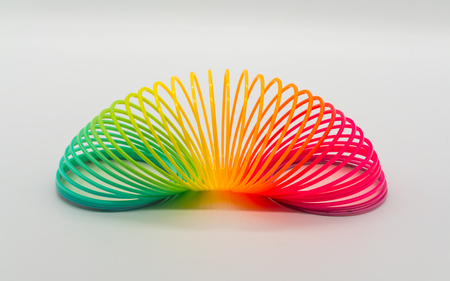 白い背景に隔離されたレインボースリンキー春のおもちゃ の写真素材 画像素材 Image